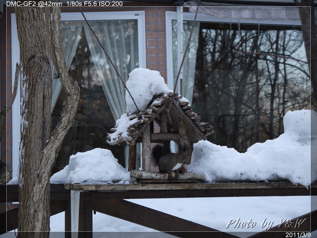 早餐時刻,民宿女主人再度展現廚藝,端上來的豐富菜色光是用看的就讓人心情愉悅。當大家才迴響起前一天晚上一起用餐的紅狐時,窗外的餵食台上又來了一隻松鼠與我們共進早餐。難不成這裡的野生動物是照三餐排班輪流演出的嗎?