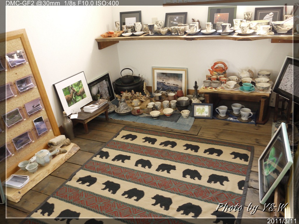 安藤先生不僅是鳥導,更是位藝術家,民宿裡有許多陶器與擺飾均出自他的巧手,照片裡的這對貓頭鷹,我媽就對牠們愛不釋手,可惜那是非賣品,安藤先生不願意割愛,只好作罷!希望這對貓頭鷹安然度過311的日本大地震啊!