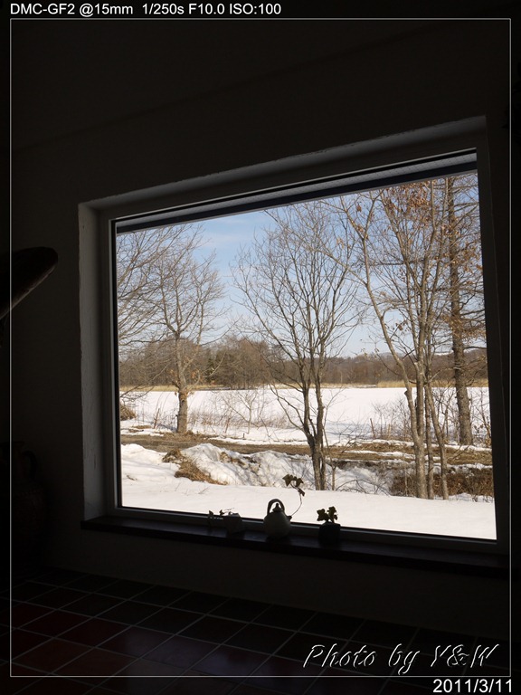 我們居住的Hickory wind民宿位於丹頂鶴餵食場「鶴居伊藤」的旁邊,冬季的雪景,使得每扇窗戶望出去,都猶如一幅風景照片般。早餐後,安藤先生告訴大家可已有一段空檔時間,大夥可以在民宿休息,或是散步到餵食場,等丹頂鶴一群群飛來。