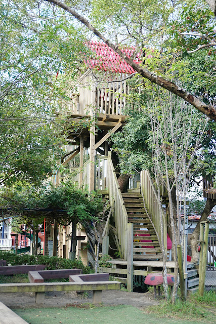 或許因為處於鄉間吧!吾田幼兒園不僅佔地廣闊,戶外活動空間充足,包含有菜園、大樹,甚至還有樹屋。比起台北往往「一樹難求」,甚至沒有半點戶外空間,或是還要擔心戶外空氣污染的許多幼兒園環境好上千百倍啊!